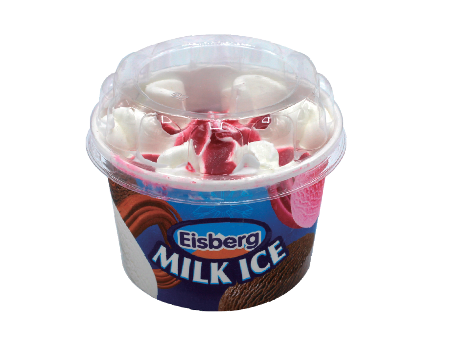 Ingredients Of Semi Milk Ices Whith Veg.Oil : Water, Sugar, Skimmed Cow Milk Powder, Milk Solids , Cocoa Powder, Non Hyd.Vegetable Oil (Palm Kernel Oil ) , Glucose Syrup ,Vegetable Stabilizers ( E407, E410, E412 , E471, 472), Vegetable Anti-Oxidant ( E304 ), Artificial Anty -Oxidant (E307) ,Salt , Artificial Flavor (Vanilla , Strawberry) , Primitted Colour ( E129 ). Fat Content (6%). Ingredients Of Strawberry Or Chocolate Ripple : Water , Sugar , Cocoa Mass , Strawberry Mashed (1%),Vegetable Stabilizers (E406 , E440) , E 330 Citric Acid ( Acidity Regulator ) , Artificial Flavor (Strawberry), Primitted Colour ( E129 ).Ingredients