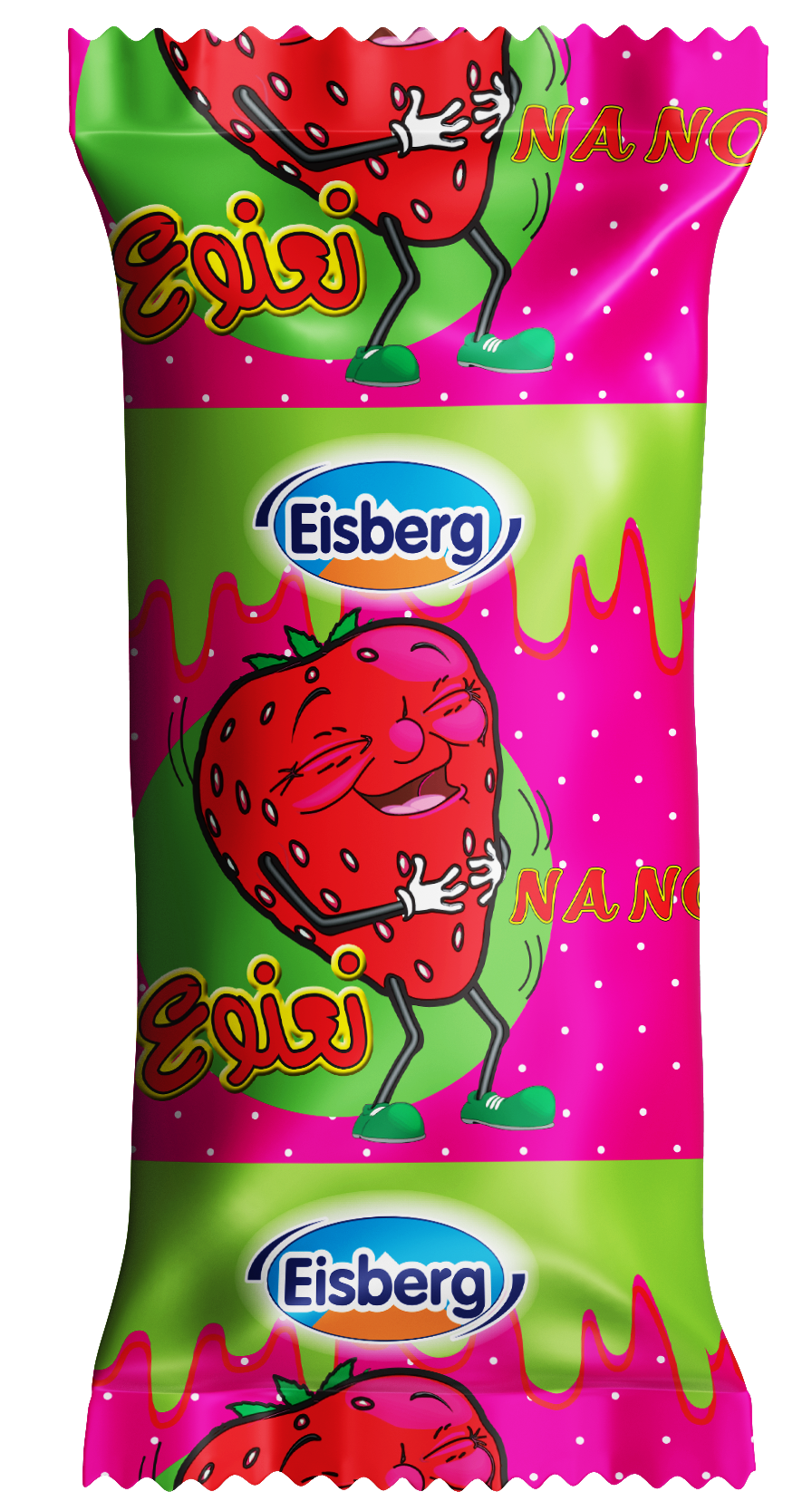 Ingredients: Water , Sugar ,Skimmed Cow Milk Powder , Milk Solids ,Glucose Syrup ,Non Hydrogenated Vegetable Oil (Palm Kernel Oil) ,Vegetable Stabilizers ( E407 Carrageenan From Red Seaweed, E410 Locust Bean Gum from Carob Seeds, E412 Guar Gum from Guar Seeds, E471 Mono-and Di-Glycerides of Fatty Acids From Palm Oil, E472 Citric Acid Esters of Mono-and Di-Glycerides of Fatty Acids from Sunflower), Vegetable Anti-Oxidant (E 304 Ascorbyl Palmpitate from Cassava Root & Palm Tree), Artificial Anti-Oxidant (E307 Synthetic alpha-Tocopherol from Synthetic Vitamin E), Salt, Nature Identical Flavor (Vanillin), Artificial Flavors(Toffee , Strawberry ), Primited Color (E 129 ) ,Fat Content( 3 % ).Ingredients